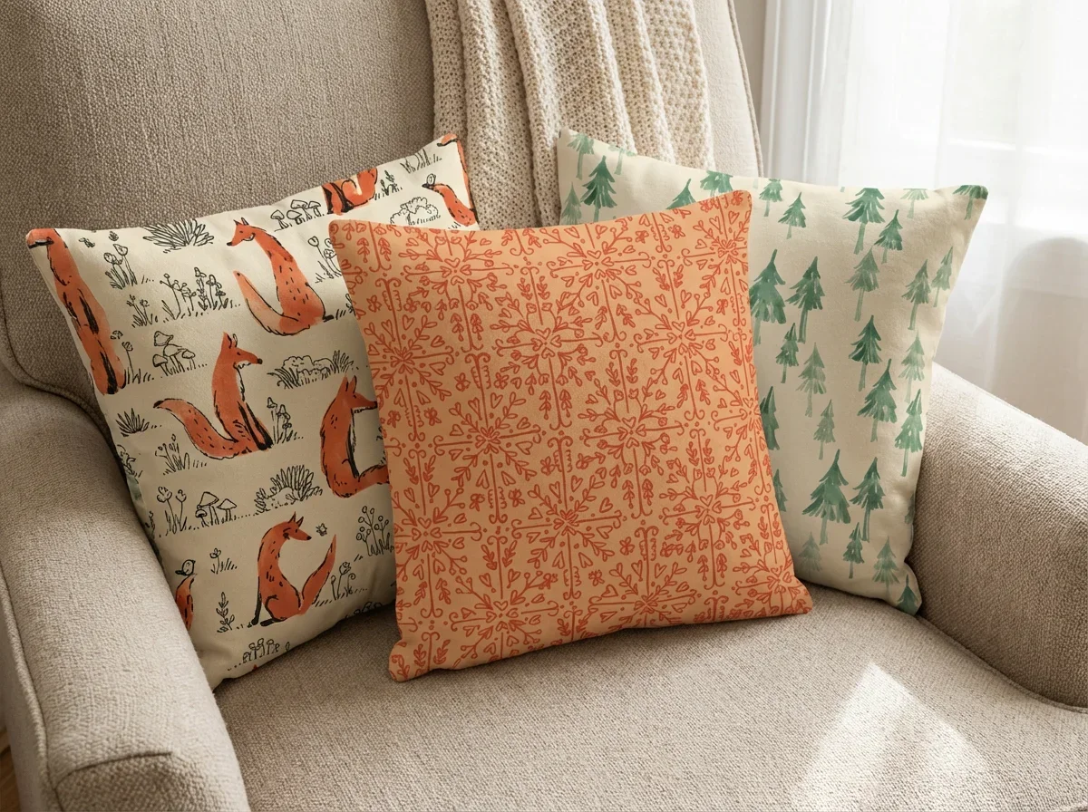For the visualizations, however, I decided to experiment. An AI assistant helped me create them, and I must admit I’m genuinely surprised and impressed by the results. Seeing my own patterns placed in beautifully styled interiors and scenes feels incredibly inspiring. It gives a new dimension to the work and allows the designs to breathe.