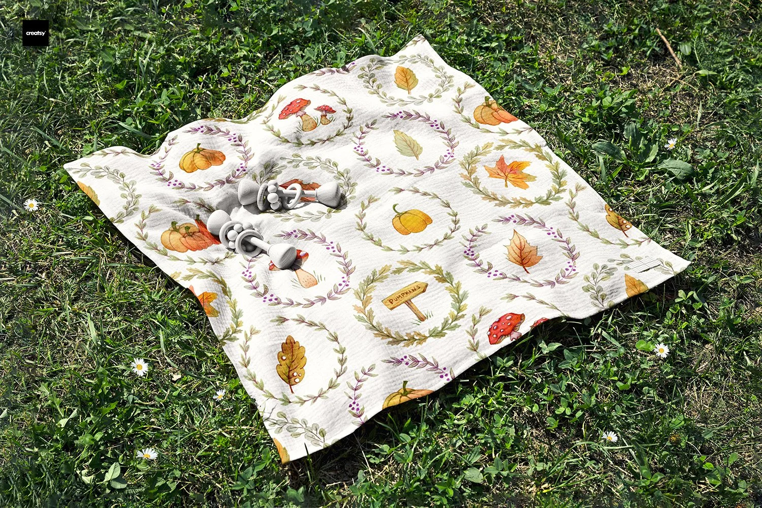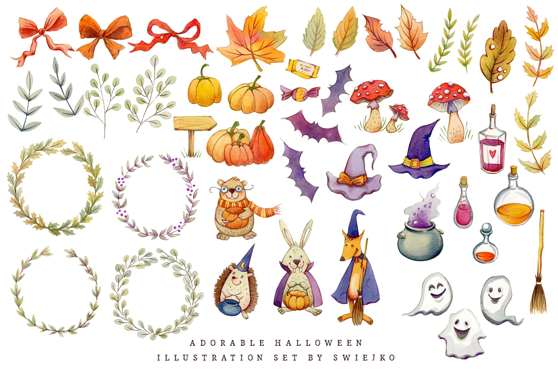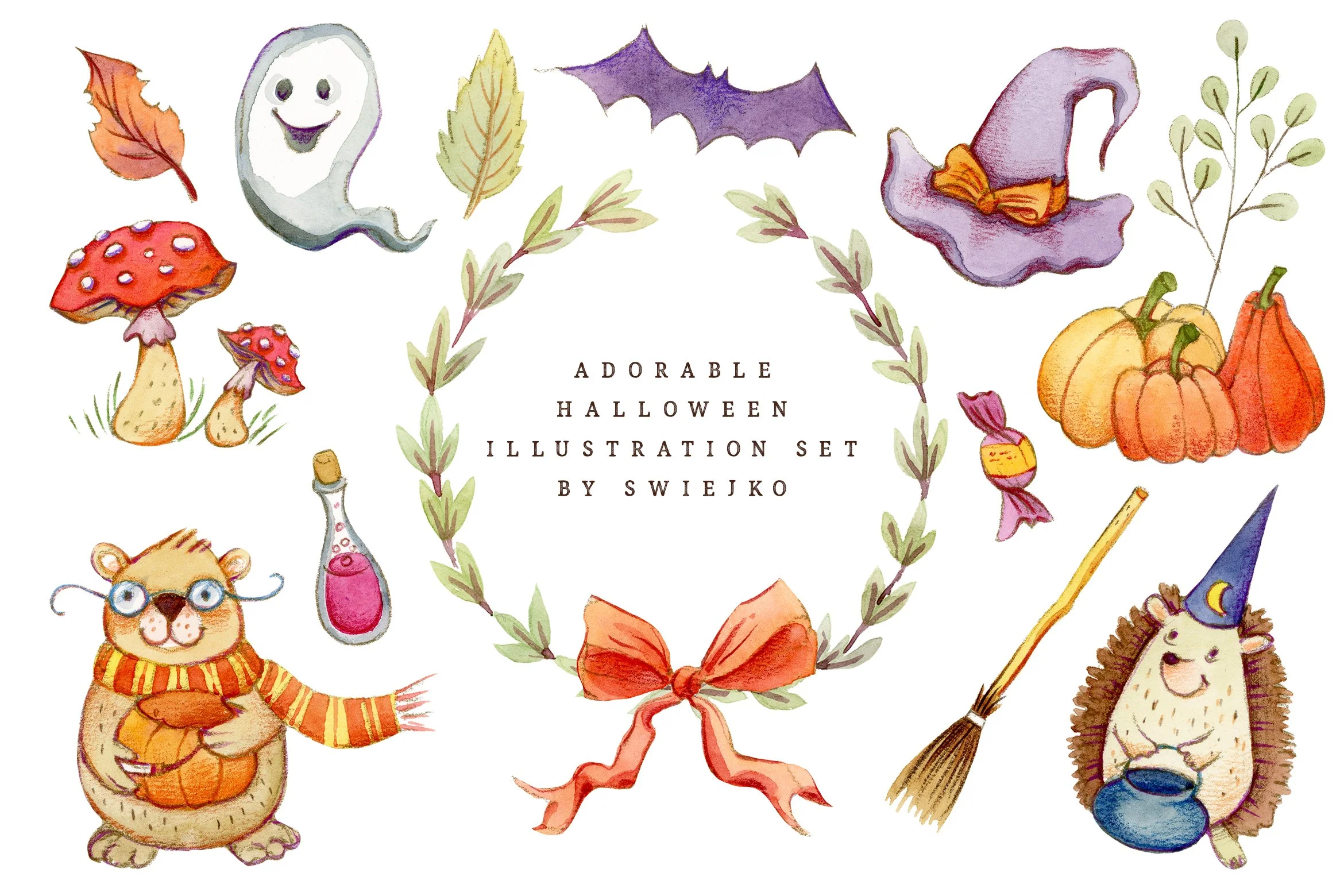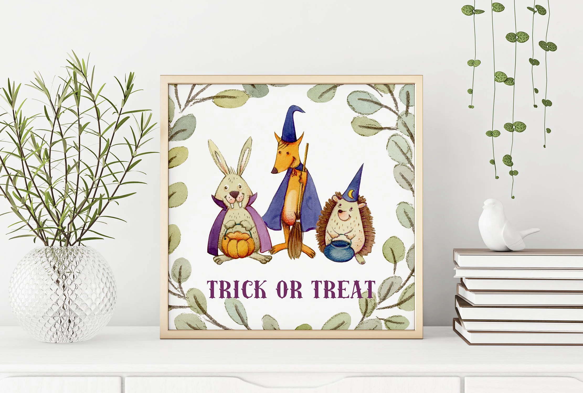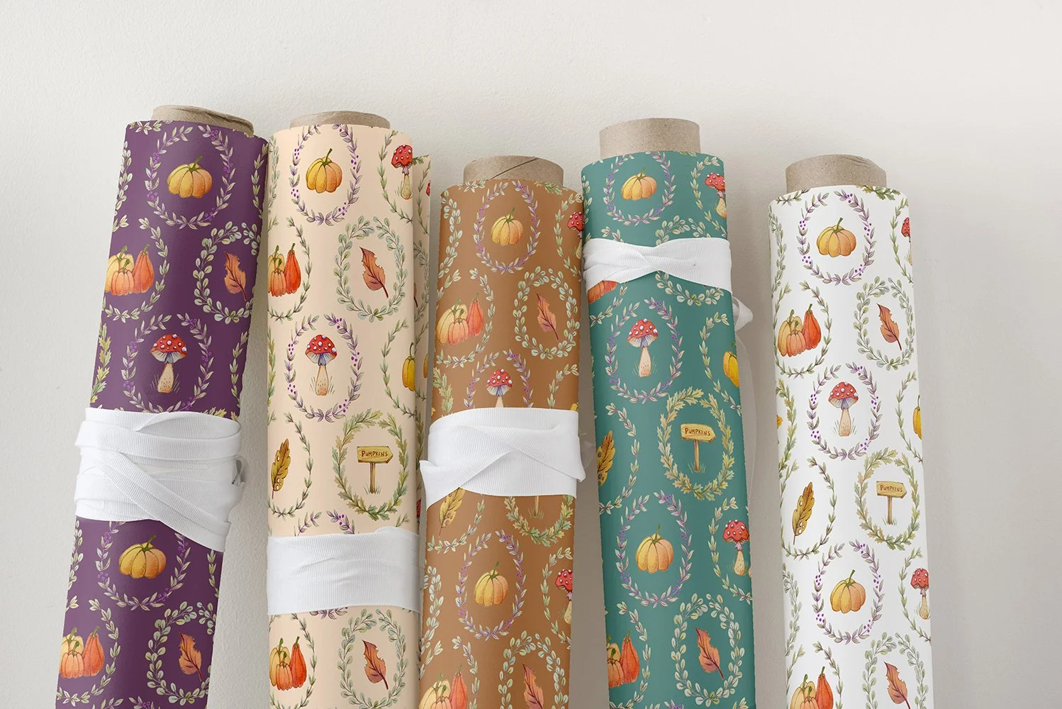 From there, the rest unfolded very naturally: a quiet forest setting, charming toadstools, and a palette built around sage green and rustic orange. Everything, as always, is entirely hand painted and hand drawn. That is one thing I never compromise on, no shortcuts, no digital brushes replacing real texture, just traditional techniques and real materials.