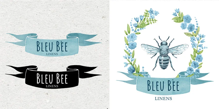 Bardzo lubię akwarelowe projekty więc bardzo się ucieszyłam gdy mogłam zrobić to logo dla Bleu Bee Linens. / I really like watercolor projects so I was really happy to create this logo project for Bleu Bee Linens.