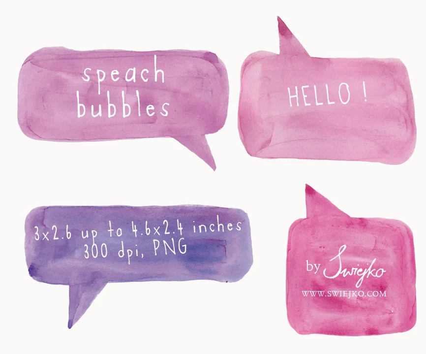 But if you look for inspiration for your new summer project here is something new: watercolor speech bubbles. A while ago on Instagram I showed you hand painted shapes. Using them I prepared few sets which will appear in my shop soon :)
